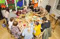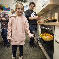 Das Konzept scheint aufzugehen. Unter den Teilnehmern ist eine Mutter mit ihrer Tochter, die Freude am gemeinsamen Kochen haben, auch ein Oma-Enkel-Team ist dabei, ein junger Mann und drei 12-jährige Mädchen, die immer zu dritt an den Schüsseln stehen und Freude auch beim Kickern in den Pausen haben. Am großen gedeckten Esstisch sitzen die Teilnehmer im Alter von 8 bis 60 Jahren zusammen, wie in einer großen Familie. Es wird besprochen, was es beim nächsten Mal geben soll. „Pommes“ ruft die Jüngste, aber die Mehrheit entscheidet sich für Frankfurter Grüne Sauce mit Pellkartoffeln und Eiern, dem Vorschlag von Stadtbürgermeister Rolf Jung, den man zum Essen eingeladen hatte. Von dem leckeren Apple-Crumble aus einem vorherigen Kochtreffen redet man noch immer gerne.