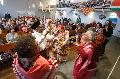 Schon der Einzug zeigt, wohin die Reise an diesem Abend geht: Mit Perkussionsinstrumenten und ausgelassenem Gesang tanzen die Mitarbeiter und die in Surinam geborenen Gäste aus Amsterdam in die Kirche – eingehüllt in fantasievolle Tücher, von denen jedes eine andere Geschichte erzählt. Auch deren Trägerinnen haben viel zu erzählen: vom Alltag in ihrem Land, von dessen reicher Kultur, vom friedvollen Nebeneinander der Religionen, den exotischen Vögeln, dem köstlichen Honig, dem schier endlosen Regenwald, der das Land zu 94 Prozent bedeckt. Aber auch: von den Sorgen der alleinerziehenden Mutter, die Maniok anbaut und für ihre fünf Kinder sorgt, indem sie Brot auf dem Flughafen verkauft. Oder den mit Quecksilber verseuchten Flüssen, den sterbenden Mangrovenwäldern, den überfluteten Küsten. Ergreifende Einblicke in ein faszinierendes Land mit vielen ethnischen Gruppen.