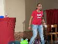 Gundula, die stressfreie Yoga-Lehrerin, versuchte mit ihrem Karma, die Besucher in einen anderen Kosmos zu führen. Ihre Lehrstunde war nur so gespickt mit Lebensweisheiten. Hier einige Kostproben: Wenn du dein Ohr auf eine heiße Herdplatte legst, dann kannst du hören, wie doof du bist. Oder, wie kann man sich in einen nackten Mann verlieben, da kann man ja keine Konto-Auszüge sehen? Oder, wenn ein Veganer Durchfall hat, dann produziert er Smoothies.