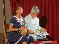 Die Dialoge der beiden in Hochform agierenden „Weibsbilder“ erzeugten einen Brüller nach dem anderen. Sie überhäuften sich gegenseitig mit „Komplimenten“ im Hinblick auf ihre Figuren. Ein Volltreffer war die Bemerkung „Was dir an IQ fehlt, machst du mit deinem BMI wieder wett“. Sie gaben sich auch gegenseitig echt wirksame Tipps, wie man aus Liebes-Frust wieder Liebes-Lust machen kann. Eine wortgetreue Übersetzung des Ausdrucks Brunch vom Englischen ins Deutsche erführen ebenfalls die begeisterten Zuschauer: Brunch ist die Kurzform aus breakfast und lunch. Auf Deutsch heißt das Fressen, gebildet aus Frühstück und Mittagessen. Wenn man jeden Gag mitschreiben würde, könnte das Papier knapp werden.