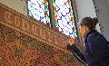 „Wir wussten, dass es ein entsprechendes Spruchband im Chorraum gab. Es konnte aber niemand sagen was dort geschrieben stand und es gab auch keine historischen Fotos. Deshalb haben wir bei der eigentlichen Innenrenovierung auf den Spruch verzichtet“, sagt der stellvertretende Vorsitzende des Verwaltungsrates der Pfarrei St. Laurentius, Norbert Noll. Doch ausgerechnet die Schwester seines Vaters sollte dem gebürtigen Nomborner letztlich hier weiterhelfen können – per Zufall. Beim Aufräumen des Speichers seiner Verwandten in Waldernbach tauchte im Sommer 2017 eine Erinnerungsurkunde vom 31. März 1940 an die Erstkommunion der ebenfalls aus Nomborn stammenden Frau auf. Mit abgebildet: ein Foto der damaligen Ausmalung des Chorraumes der Laurentiuskirche in Nentershausen. Auch einige Wörter des Spruchbandes waren hierauf lesbar, der komplette Spruch allerdings nicht.