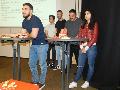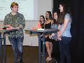 Auf regionaler Ebene beteiligten sich insgesamt elf Schülerteams aus Montabaur an dem Wettbewerb, davon zehn Teams vom Beruflichen Gymnasium Montabaur und ein Team vom Mons-Tabor- Gymnasium. Die Siegerehrung nahmen Sibylle Hölzemann-Gösel und Bianca Speier von der Sparkasse vor. Alle elf Teilnehmer erhielten nochmals die Gelegenheit, kurz ihr Firmenkonzept vorzustellen. Die einzelnen Teams hatten sich fantasievolle Namen für ihre Firmen ausgesucht: Die rettenden Hände, CarPark, Vivala You, iRun, EcoPowerStrap GmbH, RoBio, FLO Gmbh – Find your local Objekt, :onLine-FAHRmitPLAN, Dilepo, Immonote GmbH und G-Way. Die Geschäftsideen der einzelnen Teams wurden mit reichlich Beifall bedacht. Die Schülerinnen und Schüler berichteten auch von der Entwicklung innerhalb der Gruppe, so sind die Freundschaften noch enger geworden, man hat viele Stunden Freizeit für die Projekte geopfert. Da parallel zu dem Wettbewerb der Schulbetrieb mitsamt Klausuren weitergelaufen sei, wären sie auch manchmal an ihre Grenzen gestoßen und hätten mit dem Gedanken gespielt, ihre Teilnahme abzubrechen. Letztendlich haben aber alle Teams sich durchgebissen. Eigentlich hätte es keinen Sieger geben dürfen, da alle Teams hervorragende Geschäftsideen präsentierten. Aber wie es in einem Wettbewerb nun mal ist, müssen auch Entscheidungen getroffen werden, um die Erstplatzierten zu ermitteln.