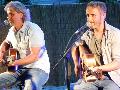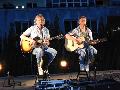 Als „Graceland“ die Bühne betraten, hatten sie schon vor dem ersten Ton einen großen Beifall empfangen. Endlich ging es los, was dann folgte, war eine Aneinanderreihung von Welthit an Welthit. Hier nur eine kleine Auswahl der Hits, die teilweise zu regelrechten Ohrwürmern wurden: „Homeward Bound“, „The Boxer“, „I am a rock“, „Bridge over troubled water“, „Slip sliding away“, „Bright eyes“,“ Scarborough fair“, „El Condor Pasa“, „Cecilia“ und so weiter. Als alle Besucher auf den absoluten Superhit des Duos wartete, nämlich „The Sound of Silence“, öffnete plötzlich der Himmel seine Schleusen und es begann heftig zu regnen. Ein eilig herbeigeschafftes Partyzelt half nur kurzfristig, da die Technik sich im Freien befand. Leider musste das Duo das Konzert abbrechen, aber niemand war darüber böse, denn die Besucher hatten ein magisches Konzert erleben dürfen. Den Musikern wurde im strömenden Regen mit jubelndem Beifall gedankt, als diese schnell ihre Instrumente in Sicherheit brachten.