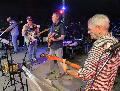 Ein Grund dafür, dass diese Veranstaltung schon mit Beginn über 250 Besucher hatte, war das tolle Ambiente der Basaltbühne mit ihren 400 Sitzplätzen. Aber auch die angekündigten Bands sorgten für die entsprechende Besucherresonanz. So wie die Gruppe „Walk the line“. Eine Band die sich aus lauter „ehemaligen Musikern“ zusammensetzt und ihren Ursprung in einem Treffen der drei Vollblutmusiker Erhard Reichelt (Gitarre), Ulli Altrichter (Bass) und Sänger und Gitarrist Lutz Neeb hat. „Wir haben uns vor drei Jahren zusammengesetzt und wollte einmal etwas Gemeinsames machen“, erzählt Lutz Neeb aus den Anfängen. Schnell wurde ein Name gefunden und die Gruppe mit Andre Kurt (Schlagzeug) und Udo Lietz (Sänger) vervollständigt. Und schnell machte sich auch die Richtung der fünf Musiker bemerkbar. „ZZ Top, Country, Cream und Clapton“ umreißt Lutz Neeb in kurzen Worten den Bogen der gespielten Stücke. Und mit Begeisterung wurden „Hey Joe“, „Kokain“ oder Stücke von Peter Green „aus dem Jahre 1965“ gespielt. Eine Begeisterung die sich auch schnell beim Publikum breit machte, das in seinen Regencapes mit Applaus nicht sparte.