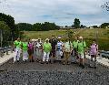 Da die kleine Brücke über der Nister gesperrt war, ging es ein Stück zwischen Nister und einer steilen Basaltabbau-Wand entlang und bald waren die Häuser am Kraftwerk erreicht. Über die Straßenbrücke, die momentan für Fahrzeuge gesperrt ist, ging es bergan – und vorbei am Skulpturenpark – nach Großseifen. Ein letzter Anstieg und der Ausgangspunkt am Friedhof kam in Sicht. Nun wurde es auf dem freien Feld langsam wärmer und so Mancher kam ins Schwitzen! Doch nach kurzer Fahrt war der Biergarten in Bad Marienberg erreicht und nach einem ersten, zischenden Bier stärkten sich die Wanderer bei Pasta und Pizza.