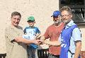 „Es geht aber auch anders, viele Landwirte in der VG Rennerod bieten Schwalben im Stall und am Haus eine Unterkunft" erklärt Ralf Mohr, Schriftführer der NABU-Gruppe Rennerod. Als Landwirt hat er selbst Rauchschwalben in seinem Pferdestall, die dieses Jahr bereits die zweite Brut großziehen. „Die wetterfeste Plakette weist das Haus und seine Bewohner nicht nur als schwalbenfreundlich aus, sondern dient auch als Vorbild und Hinweis für andere Menschen, dass dieser Dienst an der Natur wertgeschätzt wird“, sagt Frank Ebendorff, Vorsitzender der NABU-Gruppe Rennerod. Im Rahmen der NABU-Aktion „Schwalben willkommen!“ zeichnen sie Karl-Martin Gros mit Enkel Julius auf dem Berghof Rennerod aus, der über 20 Rauchschwalben-Nester beherbergt. Im Stall zeigt Landwirt Gros den Besuchern und seinem begeisterten Enkel ein „mobiles“ Schwalbennest mit vor kurzem geschlüpften Küken, die noch fast nackt einzelne Plüsch-federn tragen.