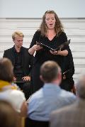Die Könner sind wie in den vergangenen Jahren die Musikerinnen und Musiker des Instrumentalensembles „Il Quadro Animato“. Die international besetzte Gruppe hat sich vor allem der historisch akkuraten Interpretation alter Werke verschrieben. Auch in Montabaur begeistern sie mit müheloser Virtuosität – beispielhaft Lorenzo Gabriele an der Traversflöte, einem Urahn der heutigen Querflöte. Deren eher weicher Klang und Gabrieles Spiel lässt Bachs rekonstruiertes Flötenkonzert (nach BWV 209/173a/207-3) unaufdringlich und beschwingt durch die Lutherkirche perlen. So selbstverständlich, dass Lorenzo Gabriele seinen Mitmusikern während seines Spiels immer mal wieder neckische Blicke zuwirft. Trauermusik klingt also wahrlich anders. Auch die vokalen Stücke, die sich zwar inhaltlich mit dem Thema Tod und dem Vertrauen auf Gottes Ewigkeit auseinandersetzen, sind alles andere als bleischwer: „Meine Seele rühmt und preist“ ist Bachs fast schon verspielte, mehrteilige Interpretation des Lobgesangs der Maria, der das Herz vor Freude über den Heiland hüpft. Tenor Daniel Jeremy Tilch gibt dieser Freunde in Montabaur eine Stimme und wird dabei souverän begleitet von Isabel Müller-Hornbach (Cello) und Susanne Schawaller (Orgelpositiv).