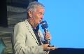 Anschaulich, informativ und unterhaltsam führte Reiner Meutsch durch den Abend. Auf der Videoleinwand konnten die gebannten Besucher die schier unglaubliche Weltumrundung der beiden Freunde verfolgen. Sie bereisten tatsächlich alle fünf Kontinente, bei dieser Reise besuchte er in Erinnerung an einen Vater die Orte, die er gerne selbst gesehen hätte. Mauretanien, Namibia, Kapstadt, Ruanda – dort wurde die erste Schule eingeweiht für 1300 Kinder –, Arabien, Indien, Indonesien, Australien, Japan, Kanada, Mexiko, Rio de Janeiro und Chile. Nach zehn Monaten die Rückkehr nach Deutschland: Im Rahmen der Weltumrundung wurden fünf Schulen eingeweiht, 100.000 Flugkilometer zurückgelegt und insgesamt 77 Länder angeflogen. 61 Schulen waren es schließlich 2017 und 2018 werden es 84 Schulen. Meutsch bedankte sich bei den Sponsoren und Spendern für fast 11 Millionen Euro über die Jahre, die in die Stiftung geflossen sind. Mit diesen Spendengeldern ist es rund 50.000 Kindern in Entwicklungsländern möglich, eine Schule zu besuchen. Zum Ende seines Vortrages berichtete Reiner Meutsch weiter, dass die Spenden eins zu eins den Schulprojekten zugute kommen. Sämtliche Kosten für Werbung, Verwaltung und Organisation werden von Sponsoren und von ihm persönlich getragen. Die Schulen werden nach UN-Normen allesamt einheitlich errichtet, dabei wird der ganze Ort mit eingebunden, vom ersten Stein bis zur Einweihung.