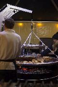 Feuerfässer spendeten Licht und Wärme. Wer Schmuck oder modische Accessoires suchte, hatte reichlich Auswahl. Nicht nur der große Weihnachtsbaum leuchtete festlich, auch die Holzhäuschen und Buden waren mit vielen Lichtern geschmückt. Feuer brannte auch beim Schmied, der alte Handwerkskunst vorführte. Handwerklich gefertigte Weihnachtsdekoration fehlte nicht und in einer original Jurte wurden Wollartikel aus Kirgistan angeboten, vom kleinen Püppchen über Filzhüte bis zu kreativ gestalteten Kissen und Decken.