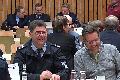 Aus dem Nachbarkreis Neuwied waren der KFI Werner Böcking und sein Stellvertreter Andreas Schmidt gekommen. Sie hatten eine Power-Point-Präsentation vom ICE-Brand vom Oktober letzten Jahres dabei. Hier waren auch Einheiten aus Ransbach-Baumbach, Selters und der Werksfeuerwehr von Verallia in Wirges dabei. Andreas Schmidt, der auch Wehrleiter der VG Dierdorf ist, wo das Schadensereignis war, schilderte sehr anschaulich und detailliert den Ablauf des Einsatzes von der ersten Alarmierung bis zum Ende des Großeinsatzes.