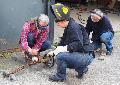 Bitte schützende Kleidung mitbringen: lange Arbeitshose aus Baumwolle, Hemd oder Jacke in langärmeliger Ausführung, festes, geschlossenes Schuhwerk aus Leder, vielleicht alte Wanderschuhe – am besten sind Sicherheitsschuhe. Bitte keine Gummistiefel! Eine Kopfbedeckung ist hilfreich (Kappe, Kopftuch), Arbeitshandschuhe aus Leder.