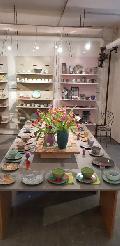 Fußläufig nur etwa 150 Meter vom Museum entfernt zeigt Alina Penninger in ihrem Garten und in der Werkstatt handgefertigtes Steinzeuggeschirr und Gartenkeramik mit zarten Dekoren verziert. Unweit dahinter befindet sich das Keramische Atelier Claudia Henkel im Töpferhof. Ihre Türen sind geöffnet und sie zeigt florale Dekore auf Tassen, blühendes auf Übertöpfen, das Blatt auf Teller, Blumiges in der Vase. Hier verschmelzen pflanzliche und keramische Welten. Man findet Vasen auf dem Tisch, hängend an der Wand, frei schwebend im Raum. Komponiertes Frühlingsblühen in Wechselwirkung mit Porzellan. Die Kombination Werkstatt, Laden, Galerie und Café finden Sie in der „KasinoKeramikkultur“ bei Nicole Thoss. Individuell, innovativ, unverwechselbar und alles von Hand gemacht. Gezeigt wird zeitgenössische Keramik aus verschiedenen Werkstätten, mit viel Leidenschaft hergestellt, für besondere Anlässe, für jeden Tag, für jeden Geschmack. Im großen Tassenregal findet man bestimmt seine Lieblingstasse und für das leibliche Wohl wird im angrenzenden Café gesorgt.