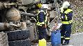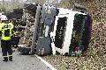 Sattelzug bei Boden umgekippt - Fahrer verletzt