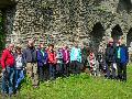 Über Wiesenwege ging es nach Süden mit einem tollen Blick auf Neuhäusel, Eitelborn und in das Tal des Binnbaches. Der Weg schlängelte sich auf naturbelassenen Pfaden durch die angrenzenden Auen. Dann führte der Weg bergan auf den Schlossberg mit der Ruine Sporkenburg. Im Inneren wurde Rast gemacht und sich mit der mitgebrachten Rucksackverpflegung gestärkt. Auf einem schmalen Pfad ging es weiter talwärts entlang des Theilenbaches bis nach Arzbach. Hier entschloss sich die Gruppe spontan zu einer weiteren Rast im Biergarten des Alten Brauhauses.