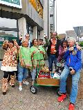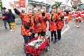 In der oberen Bahnhofstrasse formierte sich der Zug und kämpfte sich dann in Zeitlupe durch die in mehreren Reihen stehenden Besucher. Kinder, Eltern und Großeltern, befanden sich permanent im Dauereinsatz, um die im Übermaß geworfenen Kamelle, Strüsscher, Pop-Corn, Erdnüsse, Salzstangen, Dosenbier und Mini-Fläschchen einzusammeln. Wer fleißig war, der ging nicht nur mit einer vollen Einkaufstüte nach Hause, sondern konnte auch noch den mitgebrachten Rucksack füllen. Von den Prunkwagen, aber auch von den vielen Fußgruppen prasselten ohne Pause die Leckerlis auf die Menschen nieder.