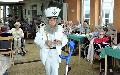Der musikalische Kapitän sorgte bei den mitsingenden „555ern“ für Heiterkeit, mal reimend, dann wieder ein bisschen zaubernd und vor allem