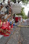 Der Freundeskreis Rengsdorf/Saint-Pierre-le-Moutier bietet traditionell Wein und Baguette an. Erlesene Delikatessen waren Austern, Champagner, Wildschweinbratwurst, scharfe Merguez-Grillwurst, Foie gras du périgord, Confit de Canard und liebevoll gestaltete „Törtlichkeiten“ von Anna und Eva, viel zu schön zum Aufessen. Nougat, Canneloni und bunte Macarons konnte man gut für später mit nach Hause nehmen, ebenso Flaschen fruchtigen französischen Biers und Schwarzwälder Schinken. Saucissons aus der Provence - angereichert mit Steinpilzen, Knoblauch, Walnüssen, Lavendel und anderen Zutaten - wurden bei steigender Menge immer preiswerter. Lavendel bildet das Ausgangsmaterial für Duftkissen, Seifen, Öle, Marmeladen und Liköre.
