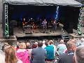 Trotz Regen und wieder Regen verharrten die Besucher und der ganz harte Kern, rund 100, blieb bis zum Schluss. Die Stimmung war angenehm und positiv. Das sanfte Prasseln der Wassertropfen brachte etwas Kühle in die schwül-warme Luft, ließ die Schirme immer wieder aufploppen und die Regencapes rascheln. Ansonsten diente die Nissenhalle als Unterstand. Und die Musiker standen geschützt unter der Bühnenüberdachung.
