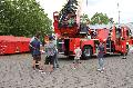Den größten Spaß hatten die Kinder naturgemäß beim Spritzen mit einem richtigen Wasserschlauch, den sie aber zuvor, wie im Ernstfall, ausrollen und anschließen mussten. Bei sehr warmen, sommerlichen Temperaturen, war das Highlight natürlich das gegenseitige Nassmachen. An einer weiteren Station erfuhren die Kids, wie der Funkverkehr im Einsatz funktioniert. Das war sehr spannend, weil sie dabei selbst die Funkgeräte benutzen durften und per Funk Kontakt aufnehmen konnten. Der DRK-Ortsverein Herschbach modellierte mit Hilfe von Kitt täuschend echt aussehende Schnittverletzungen auf die Arme der Kinder. Stolz zeigten sich die „Schwerverletzten“ und ließen sich anschließend fachgerecht von den Aktiven des DRK-Ortsvereines Selters einen Verband anlegen. Den Einsatz der neuen Drehleiter der Feuerwehr Selters konnten die Kinder hautnah miterleben, als sie in den Rettungskorb einstiegen und in die Höhe gefahren wurden. Der Umgang mit Chemikalien erweckte großes Interesse, genau wie die Vorführung der Schutzbekleidung, die von den Feuerwehrleuten bei Brandeinsätzen getragen werden muss.