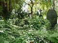 Die bislang neueste Anlage ist zu Beginn des Jahres auf dem alten Teil des Geländes entstanden: Der so genannte Basaltgarten besteht aus zwei Kreisen. Im äußeren können Urnen unter Stelen in Feldern beigesetzt werden, die mit Natursteinpflaster eingefasst sind. Im inneren Kreis sind die Urnengrabstätten mit Scheiben aus Basaltsäulen abgedeckt. Angesichts frisch gepflanzter Bäume und lila blühendem Salbei glaubt man tatsächlich eher in einem Garten als auf dem Friedhof zu sein. Aber es sind nur ein paar Schritte bis zu einem historischen Bereich, wo die Natur bewusst sich selbst überlassen wird: Hier bringen Wurzeln alter Bäume ebenso alte Grabsteine in Schieflage, und es ist so schattig, dass große Farne sich ausbreiten.