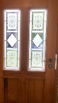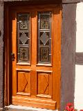 Jetzt begann die eigentliche kunsthandwerkliche Meisterarbeit des Schreiners, denn der entscheidende Faktor bei derartigen Einzelanfertigungen von historischen Haustüren ist die Qualität der Handarbeit. Von der Planung und Zeichnung der einzelnen Türelemente bis zur handwerklichen Umsetzung ist viel Einfühlungsvermögen und Wissen um die Fachwerkstilistik, das Material und die gestalterischen Details gefragt. Glücklicherweise verhalf ein Dachbodenfund von rund 130 Jahre alten matt geschliffenen und floral ornamentierten Kassettengläsern der symmetrischen Gestaltung der Haustür zur Vollendung. Diese auch oft unterschätzten Details erzeugen dann im ganzen Erscheinungsbild den eigentlichen Charme der neuen "alten" Haustür.