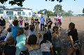 Eigentlich sollte im Geburtstagskind selbst, nämlich in der Mensa, gefeiert werden. Den sommerlichen Temperaturen geschuldet, ging es dann aber spontan nach draußen in die Nähe des Sportplatzes, wo eine dicke Eiche Schatten für alle spendete. Sie war nicht die Einzige, die spendete. Scheinbar dachten alle wie Andree Stein, der sagte: „Als Gast gehört es sich, dem Geburtstagskind ein kleines Geschenk zu machen.“ Das hatte er in Form von Soft-Bällen mitgebracht. Zusammen mit den begeisterten Kindern stimmte er zudem ein fröhliches „Zum Geburtstag viel Glück“ auf die Jubilarin an.