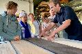 Trotz des hohen Technologisierungsgrades in der Produktion spielt die Handarbeit nach wie vor eine wichtige Rolle, wie Bernd Wünsche den Besuchern anhand seiner Arbeitsprobe zur Gesellenprüfung von 1981, einem Tablett, demonstrierte. Eine fundierte, handwerkliche Ausbildung und das Verständnis für den Werkstoff Holz sind die Grundlage für eine erfolgreiche Laufbahn als Tischler.