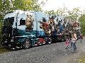 An Internationalität waren auch die ausgestellten Trucks nicht zu überbieten: Volvo, Scania, MAN, Mercedes, Mack und DAF. Vor den einzelnen Trucks versammelten sich Anhänger von diesem oder jenem Fabrikat, um mit den Fahrern zu fachsimpeln, oder die neuesten Infos über Leistungsstärke und Auslastung zu erfahren. Es war sowieso auffällig, wie kameradschaftlich die Fahrer der Trucks miteinander umgingen, es ist nicht kitschig, wenn von einer einzigen, großen Familie gesprochen wird. Es sind ja auch die „Kapitäne der Landstraße“, die immer bereit sind, dem anderen zu helfen, sollte er mal in Schwierigkeiten stecken.