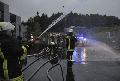 Eine zusätzliche Gefahr wäre in einem richtigen Einsatz der starke Regen gewesen, der während der Übung über dem Westerwald niederging. „Manche chemische Stoffe reagieren mit Wasser“, war eine der Warnungen. Trotzdem wurde die Wasserversorgung unter anderem aus einem Löschteich aufgebaut, da aus einer der Hallen starker Rauch drang und dadurch sofort zu sehen war wo es brennt. Dieses Feuer wurde schnell gelöscht und im Anschluss wurden gemeinsam die Erfahrungen aus der Übung besprochen. kdh