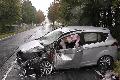 PKW gerät in Gegenverkehr und kollidiert mit Müllfahrzeug