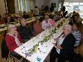 Von der Apotheke aus zog die fröhliche Schar nach erfolgter Tanzeinlage zum Nauorter Dorfgemeinschaftshaus, wo schon jeder von den „Lichtblickern“ und den freundlichen Helfern des gemischten Chors Nauort, mit einem Gläschen Sekt empfangen wurde. Nauorts Ortsbürgermeister Dietmar Quernes begrüßte die muntere Gesellschaft auf das Herzlichste und freute sich über die gute Resonanz der Nauorter Senioren. Die für diesen Tag von der Gemeinde spendierte Erbsensuppe aus Kleppel´s Küche fand reißenden Absatz und die herbstlich dekorierten Tische füllten sich schnell unter den eingängigen Klängen der Musik von Andreas Nilges. Zum Nachtisch spendete die Apotheke leckeren Kuchen vom "Magret".