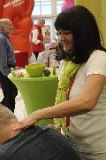 Die Klangschalenmassage erfreute sich großer Beliebtheit und die Mitarbeiterinnen der Praxis für Wellness, Beauty und Gesundheit hatten alle Hände voll zu tun. Zahlreiche Besucher nutzten die günstige Gelegenheit, Verspannungen durch eine Nacken-, Hand- oder Rückenmassage behandeln zu lassen.