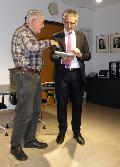 Danach ging es zum Landtag, der während der Sanierung des historischen Deutschhauses vorübergehend in der Steinhalle des Landesmuseums untergebracht ist. Vorbei an römischen Statuen und Gemälden italienischer Meister ging es zum Plenarsaal, wo die Gruppe für eine Stunde einer Sitzung beiwohnen konnte. Hier ging es gewohnt kontrovers zu. Danach konnten die Wäller "ihren" Landtagspräsidenten, Hendrik Hering, treffen und hatten kurz Gelegenheit, ihm ein paar Fragen zu stellen. Zum Abschied bedankte sich der Vorsitzende des Westerwaldvereins Bad Marienberg, H.J. Wagner bei Hendrik Hering für die Einladung nach Mainz und überreichte ihm eines der letzten Exemplare des Mundartbuches "Su wôrėt fröher".