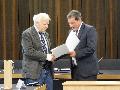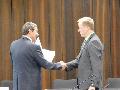 In lockerer Stimmung, immer wieder mit einem Bonmot vom Landrat garniert, nahm die kleine Ehrungszeremonie ihren Lauf. Nachdem das Prozedere der Reihenfolge geklärt war, Ladies first, die Herren dann in alphabetischer Reihenfolge ihres Namens, nahm Achim Schwickert die Ehrungen vor. Es waren dies im Einzelnen: Vera Speck aus Rennerod, Carl-Heinz Cäsar aus Mogendorf, Gerhard Monrose aus Unnau, Bernd Rickes aus Wahlrod, Frank Schäfer aus Kölbingen, Gerhard Stahl aus Sessenhausen und Willy Strunk aus Kirburg.