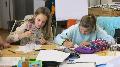 Geldner zeichnete die ersten Schritte an einem Flipchart vor. Diese Skizzen, die dann immer weiter verfeinert und ausgestaltet wurden, waren die Grundlage für das später entstehende Kunstwerk. Die Jugendlichen konzentrierten sich so sehr auf das Zeichnen, dass sogar Smartphones fast nicht beachtet wurden.