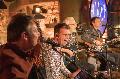 An Ermutigung fehlt es nicht an diesem Abend, der draußen nass und abweisend ist. Auf der runden Leinwand prasselt plötzlich ein Holzfeuer und das Lied „Ring of fire“ (Jonny Cash) wärmt die Herzen. Bruno Kötting und Eddi Stinner spielen Trompete dazu. Eine tolle Version.