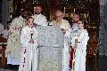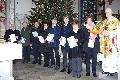 Im Anschluss wurden die nunmehr ausscheidenden Mitglieder des Pfarrgemeinderates von der PGR-Vorsitzenden Petra Bandlow verabschiedet. „Vor drei Jahren haben wir uns als ersten PGR der neuen Pfarrei gemeinsam auf den Weg gemacht. Wir haben Neuland betreten, Pionierarbeit geleistet und Schritte aufeinander zu gemacht. Es war uns wichtig, dass Glaube gelebt und Kirche vor Ort erfahrbar werden. Für eine lebendige Kirche haben sie (die ausscheidenden PGR-Mitglieder) viel Kraft und Zeit gewidmet“, sagte Petra Bandlow. Als äußeren Dank überreichte sie, gemeinsam mit Pfarrer Sahl, Dankesurkunde und das Franziskus-Kreuz, ein stilisiertes T (mit dem Franziskus Menschen segnete und damit auch seine Briefe unterschrieb Das TAU ist daher ein Symbol für die franziskanische Familie). Der PGR-Vorsitzenden wiederum, die auch im Amt bleiben wird, überreichte Pfarrer Sahl ein Blumengebinde, als äußeres Zeichen des Dankes, mit dem Petra Bandlow den Gottesdienst vorbereitet hatte. Im Anschluss wurden die neu gewählten PGR-Mitglieder den Gläubigen vorgestellt und mit Gottes Segen auf den Weg geschickt. Auch sie erhielten ein Franziskus-Kreuz.