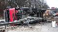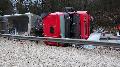 Sattelzug mit Schüttgut kippt auf A 48 um