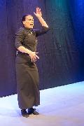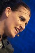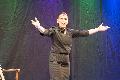 Leidenschaftlich und mit clownesken Grimassen bot sie originelle Lieder und skurrile Tänze dar und verbreitete Stimmung, um im Anschluss festzustellen, dass sie gern mal wieder auf eine ordentliche Beerdigung gehen würde.