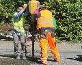 Die drei Schaugräben – in der Bausprache Schürfgruben genannt – gehen einmal quer über die gesamte Straßenbreite. Sie sind einen Meter breit und ebenso tief. Fachleute können anhand dieser Gräben sehen, welche Schichten sich unterhalb von Asphalt und Pflaster befinden und ob diese gleichmäßig verlaufen. Bei einer Straße, die schon seit Jahrhunderten als Zuweg zur Innenstadt dient, ist das wie ein Ausflug in die (Stadt)Geschichte. Außerdem sind diese Schaugräben für die Versorgungsträger interessant, denn im Querschnitt der Straße können sie genau erkennen, welche Leitungen wo genau und in welcher Qualität verlaufen. Es geht um Strom, Wasser, Abwasser, Gas, Kabelfernsehen, Telekommunikation und um den Stadtbach. Auch das kann zum Ausflug in die jüngere Technik-Geschichte werden, denn früher hat man beispielsweise alte Telefonleitungen stillgelegt, aber nicht unbedingt aus der Erde entfernt. Anhand der Schaugräben konnten nun alle Leitungen definiert und zentimetergenau vermessen werden – eine wichtige Datengrundlage für die Neuplanung der Straße.