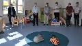 Mara Licht, die Leiterin der Kita „Haus der kleinen Füße“, dankte allen Beteiligten, sie erklärte weiter, dass sie in ihrer Arbeit von einem hochmotivierten Team von Erzieherinnen unterstützt werde. Alle seien bereit, endlich mit der Arbeit beginnen zu können. Insgesamt sind 12 Erzieherinnen in der Kita beschäftigt sowie eine Heilerziehungspflegerin, die Kinder mit Beeinträchtigung betreut. Es werden 85 Kinder aufgenommen, die in einer Krippengruppe für Kinder bis 2 Jahre, sowie drei geöffneten Gruppen für Kinder von 2 bis 6 Jahren, aufgeteilt sind. Von den 85 Kindern haben 34 Ganztagsplätze. Es soll ein teiloffenes Betreuungskonzept zum Tragen kommen, das heißt, zunächst bleiben die drei Gruppen separat für sich, später werden die Türen geöffnet und man kann sich gegenseitig besuchen und beschäftigen. Die Verpflegung der Kinder erfolgt innerhalb der Kita, dafür stehen dann eine ausgebildete Köchin und zwei Küchenhilfen zur Verfügung.