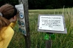 Den nötigen „Durchblick“ bekommen wir an der nächsten Station. Durch eine Art Fernglas schauend, sehen wir die Natur, wie sie beispielsweise durch den Sucher des Fotoapparates zu sehen ist. Ein „Baumtelefon“, nur wenige Meter weiter entfern, erzeugt unsere Aufmerksamkeit. Ein Baumstamm dient dabei der Schallübertragung. Und so funktioniert es: An einem Ende des Stammes klopfen oder reiben und am anderen Ende das Ohr darauflegen und horchen. Etwa 100 Meter weiter werden wir von ein paar „Flattergeistern“ begrüßt, die uns von den Bäumen zuzuwinken scheinen. Eine „Umarmung“ vollziehen zwei ineinander gewachsene und verschlungene Bäume auf der nächsten Station. Eine „Taststraße“, die man auch barfuß begehen kann, beendet unsere kleine Entdeckertour und wir wandern weiter zu unserem Auto.