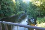 Der Westerwaldsteig führt uns nun wieder ein kurzes Stück bergauf. Links kommen wir an einem alten Stollen vorbei. Auf einem kleinen Felsen beim Stollen sitzend, machen wir eine kurze Rast. Nun geht es den Westerwaldsteig abwärts Richtung Helmeroth. Wir folgen dem Steig weiter, an der Nisterbrücke vorbei, halten uns anschließend rechts und kommen an eine große Wiese ins Tal der Nister. Am Ufer und direkt in der Nister sind überall Insektenfallen installiert. Hierbei handelt es sich um eine Begleitforschung zur Auswirkung der durchgeführten Gewässersanierung durch die Universität Koblenz-Landau. Dabei wird die Emergenz (verschiedene Entwicklungsstadien geflügelter Insekten) im Gewässer sowie am Ufer untersucht. Dafür werden schwimmende Fallen sowie Fensterfallen (Flugfallen) eingesetzt, die nicht mit Lockmittel versehen sind. Da die Insekten ein wesentlicher Nahrungsspender für Fledermäuse, Vögel und Spinnen sind, wirkt sich das Aufkommen auf deren Lebensräume aus.