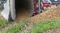 An der Einsatzstelle stelle sich zum Glück heraus, dass keine Person unter dem LKW eingeklemmt war. Der 51-jährige LKW-Fahrer und seine Ehefrau als Beifahrerin, die sich bei dem Unfall noch im Führerhaus befanden, erlitten leichte Verletzungen. Aufgrund der Spurenlage wird folgender Hergang angenommen: Der Hänger stand mit den Achsen schief auf einer Wiese, die Zugmaschine abschüssig. Durch das Ausfahren des Hubwerkes am Auflieger verlagerte sich der Schwerpunkt nach oben. Dadurch wurde der Zug aufgrund der Hebelwirkung zur Seite gezogen.