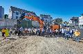 Montabaur. Da es in Corona-Zeiten nicht möglich ist, große Feste zu geben, trafen sich in kleiner Runde die Projektbeteiligten aus Politik und Verwaltung, die Planer der zentralen Gewerke sowie Vertreter der Baufirma Gollwitzer. Viele Nachbarn nahmen von ihren Wohnungen aus teil, standen an Fenstern und Balkongeländern und winkten. Unter fachkundiger Anleitung eines Baggerführers nahm Bürgermeister Ulrich Richter-Hopprich selbst den ersten Baggerstich vor.