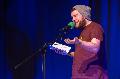 In der zweiten Runde traten die Fabelstapler an mit einer fetzigen Radiomoderation im Stil einer Fußballbundesliga-Schlusskonferenz. Allerdings berichteten sie nicht über Tore und Spielstände, sondern über das Geschehen in deutschen Tanzsälen und Diskotheken. Malte Küppers begeisterte mit einer kernigen Geschichte über „Stärken und Schwächen“ und Laura Paloma erzählte von Britta, der alleinerziehenden Mutter, die direkt nach der Geburt von Tochter Lilly weiterarbeiten muss. Sie mag Grün auf Grün, wohnt aber Grau in Grau und ihr Tag besteht aus Schlafen und Fressen. 5 Millionen geht es ähnlich, sie sind Gebärmaschinen, haben keine Lobby und werden benutzt. Denn Britta ist eine Kuh. Dieser nachdenkliche Vortrag bewegte die Zuschauer sehr und so gewann Laura die Herzen des Publikums und den Dichterwettstreit.