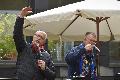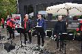 Horressen. Es kamen wohl mehr Besucher/innen als erwartet, so hatte Irene Lorisika, zusammen mit ihrem Team, alle Hände voll zu tun, genügend Stühle und Bänke herbeizuschaffen. Wer jedoch keinen Sitzplatz ergattern konnte, der vergnügte sich halt an einem der Stehtische. Zur guten Stimmung trug ganz wesentlich ein traumhaftes Open-Air-Wetter bei, denn nach Tagen der grauen Tristesse, lockerte der Himmel pünktlich zum Beginn des Konzertes auf, sogar die Sonne blinzelte häufig durch die Wolken, und gesellte sich als Zaungast dazu.