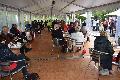 Um die Wartezeit bis zum Beginn des Konzertes zu überbrücken, schafften die fleißigen Mädchen vom Service leckeren Kuchen, Kaffee und kühle Getränke an die Stehtische und unter das offene Zelt. Somit waren die allerbesten Voraussetzungen für das Spektakel gegeben. Es herrschte eine extrem freudige Atmosphäre, ein Mix aus Betriebsausflug, Kappensitzung und Kirmesabend sollte sich über zweieinhalb Stunden entwickeln, obwohl streng auf Einhaltung der Abstands- und Hygienevorschriften wegen der Pandemie geachtet wurde.