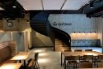 Hachenburg. Beim Komplettumbau eines Gastrobereiches in Frankfurt sollte die Kantine im Erdgeschoss mit der Cafeteria im ersten Obergeschoss verbunden werden. Innenarchitektin Gabriele Kaehlbrandt wurde mit der Planung beauftragt. Als Treppenbauer wurde die auf hochwertige und anspruchsvolle Metallbauarbeiten spezialisierte Firma Metallbau Hölzemann mit ins Boot geholt. Die Kantinengestaltung folgt dem Streetfood-Konzept. Deshalb wurden bei der Innenraumgestaltung vor allem natürliche Materialien wie Stahl und Holz eingesetzt. Die Wahl fiel auch wegen der sehr beengten Platzverhältnisse auf eine Stahlwendeltreppe mit handlaufhohen Stahlwangen und einem Stufenfaltwerk.