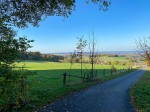 Wir folgen dem Weg bergab bis zum Feld. Hier geht es dann rechts weiter nach Birkenbeul, biegen aber am Ortsrand wieder links ab und drehen noch eine Runde durch das Feld. Man gelangt hier zu einem Aussichtspunkt und hat nach links einen tollen Blick über das Irsetal.
